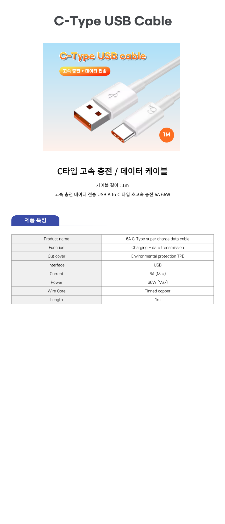 C-Type USB 케이블 (1m)